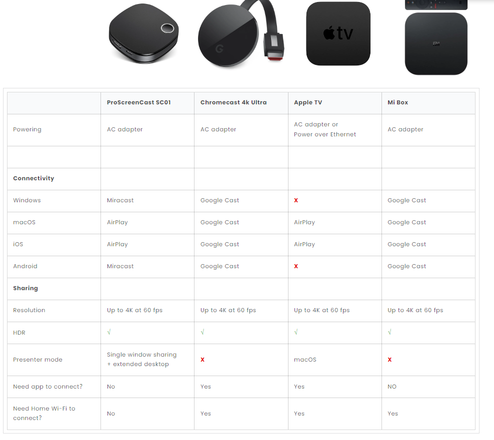 ProScreenCast SC01 Miracast Dongle TV İçin, 4k@60Hz HDR Kablosuz Ekran Adaptörü